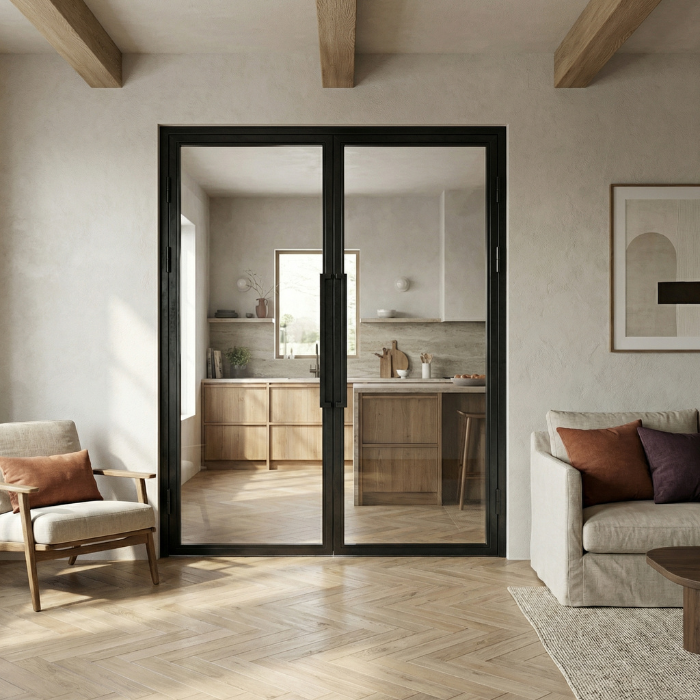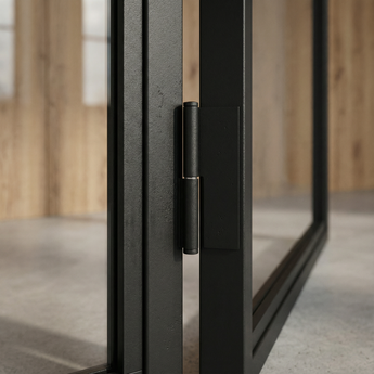 Geen vakverdeling, geen afleiding. Alleen glas dat het daglicht vangt en staal dat het geheel draagt. Het resultaat is een deur die ruimtes verbindt, zichtlijnen verlengt en een kalme, moderne sfeer creëert. Perfect voor interieurs waar licht en eenvoud de hoofdrol spelen.