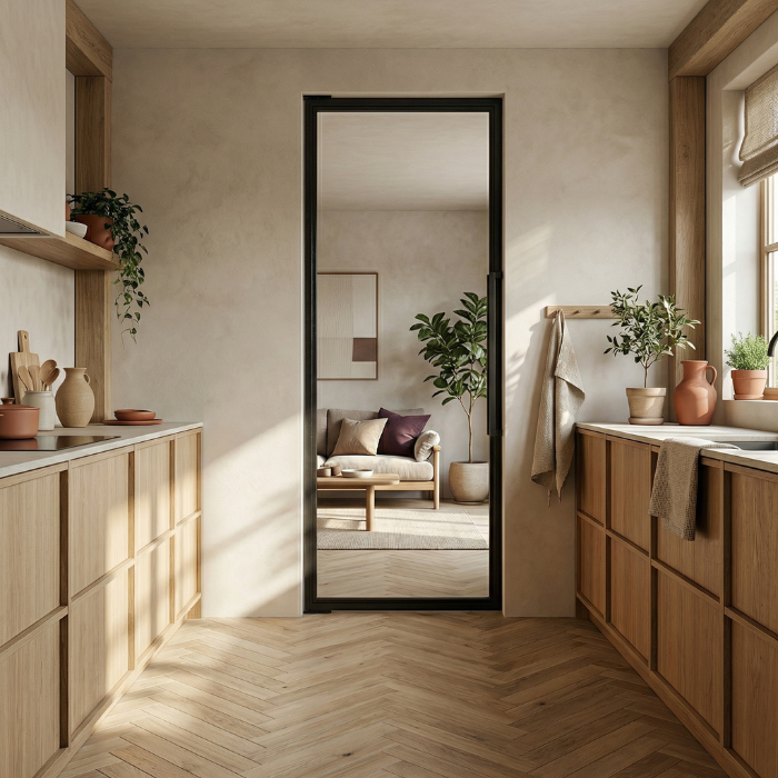 Ontworpen tijdens de verbouw van onze eigen woonboerderij, waar we ontdekten hoe belangrijk licht, ruimte en beweging in huis zijn. Onze stalen taatsdeuren draaien soepel in beide richtingen, sluiten altijd strak en creëren een open, luxe gevoel zonder in te leveren op functionaliteit. Gemaakt van hoogwaardig staal, minimalistisch vormgegeven en eerlijk geprijsd. Een deur die meer doet dan scheiden. Een statement dat je interieur af maakt.