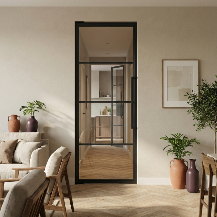 een duidelijke vorm en structuur in het interieur. Deze stalen binnendeur past perfect in moderne, minimalistische en eigentijdse woonstijlen.